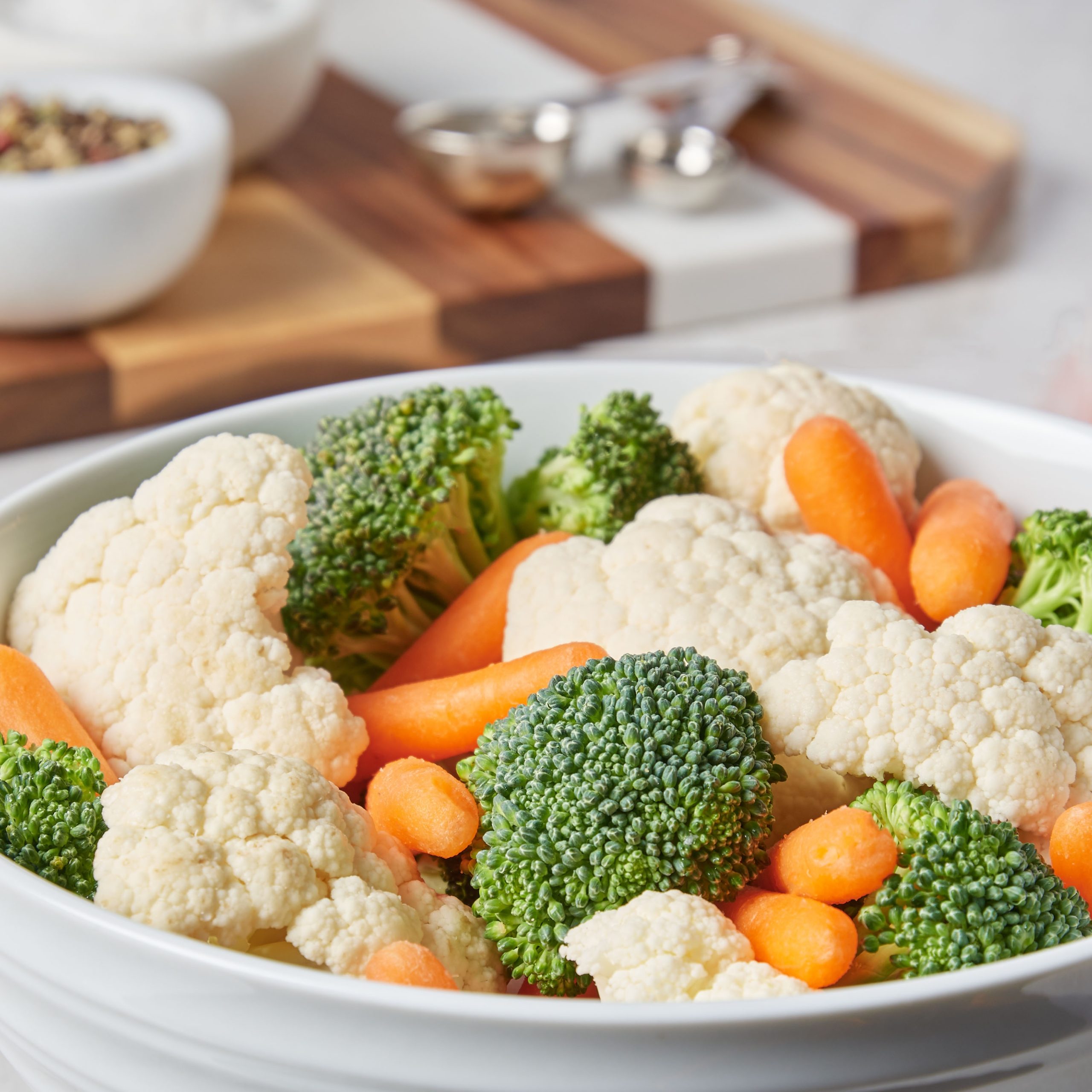 Marketside Vegetable Medley is made with a tasty blend of broccoli florets, baby carrots, and cauliflower florets. These vegetables are picked fresh, washed and ready to eat for your convenience. They taste great on their own and can also be used as an ingredient in casseroles, soups, pot pies, and salads. Serve with beef short rib, roasted carrots, and bread rolls for a hearty classic meal. Season them with all your favorite spices and a hint of melted butter. Follow our delicious roasted vegetable medley recipe located on the back of the packaging. They offer nutritional benefits as they are a rich source of dietary fiber and vitamins A and C. They come packaged inside a microwave-safe bag that heats in as little as three minutes. Healthy sides are made easy with Marketside Vegetable Medley.
