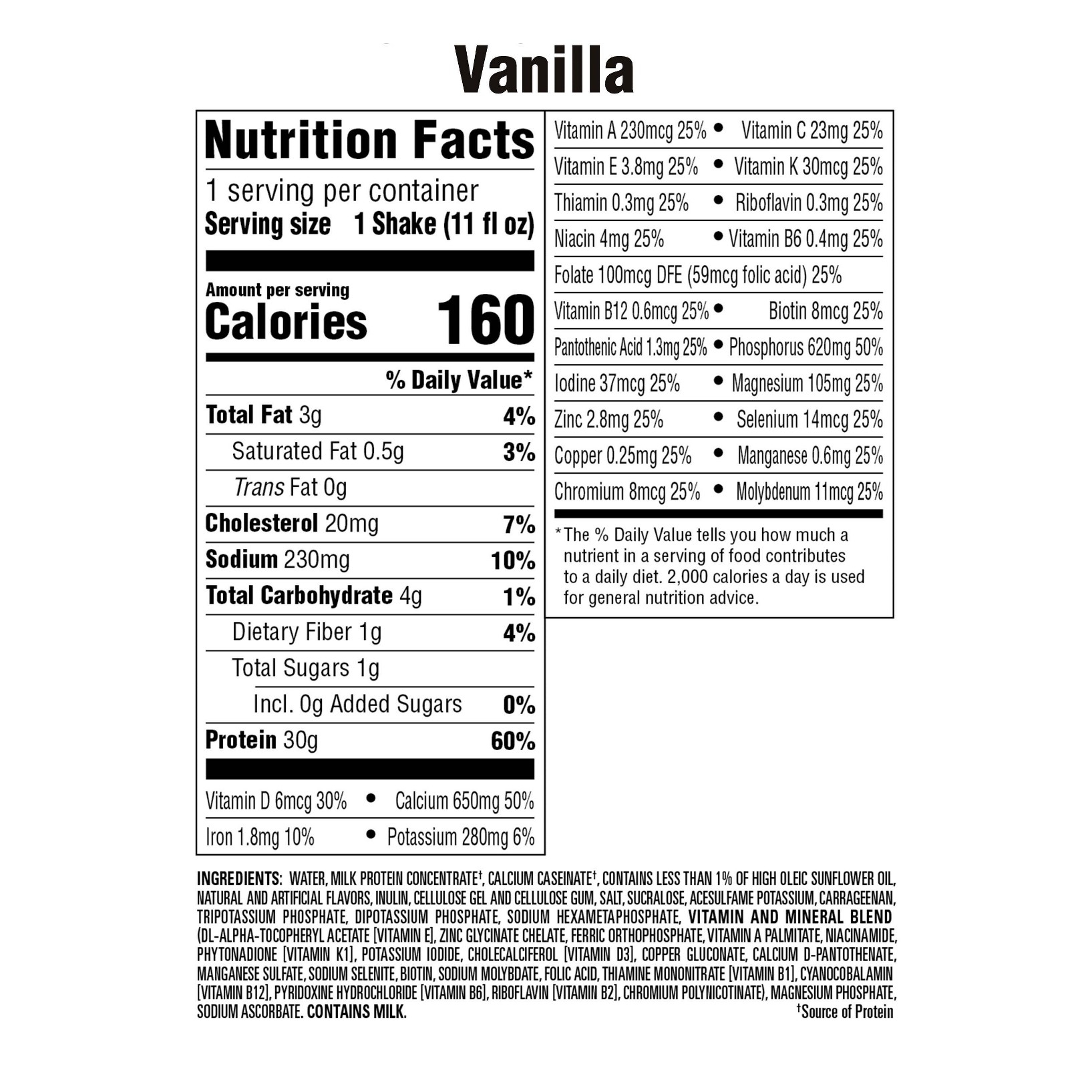 u0026bull;30g Proteinu003cbru003eu0026bull;160 Caloriesu003cbru003eu0026bull;1g Sugaru003cbru003eu0026bull;24 Vitamins u0026 Mineralsu003cbru003eu0026bull;Contains caffeine = 1 cup of coffeeu003cbru003eu0026bull;No Artificial Colors, No Soy, Gluten Free, Kosher.
