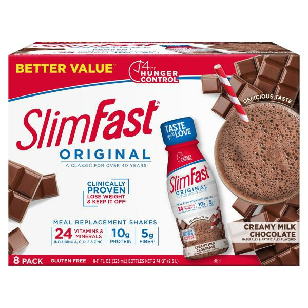 SlimFast Meal Replacement Shake, Creamy Milk Chocolate, 8 Pack