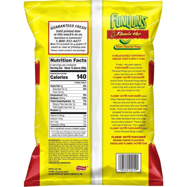 u0026bull;Zesty onion flavor in a crispy texture in the shape of an onion ringu003cbru003eu0026bull;Try with your favorite dip for a taste sensation that runs rings around other snacksu003cbru003eu0026bull;Great for picnics, parties, and lunchesu003cbru003eu0026bull;Next time you’re in the mood for a tasty treat that’s out of the ordinary, try FUNYUNS Onion Flavored Rings