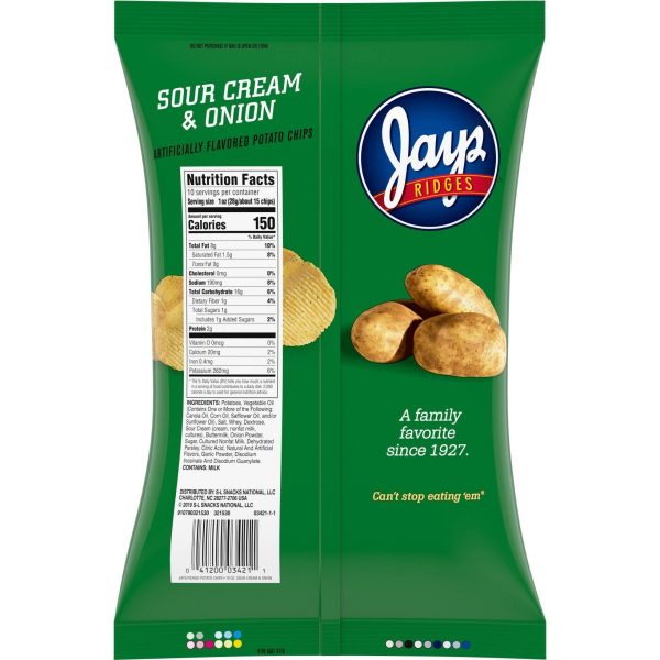 Jays Chips Ridges Sour Cream u0026 Onion Potato Chips – 10oz