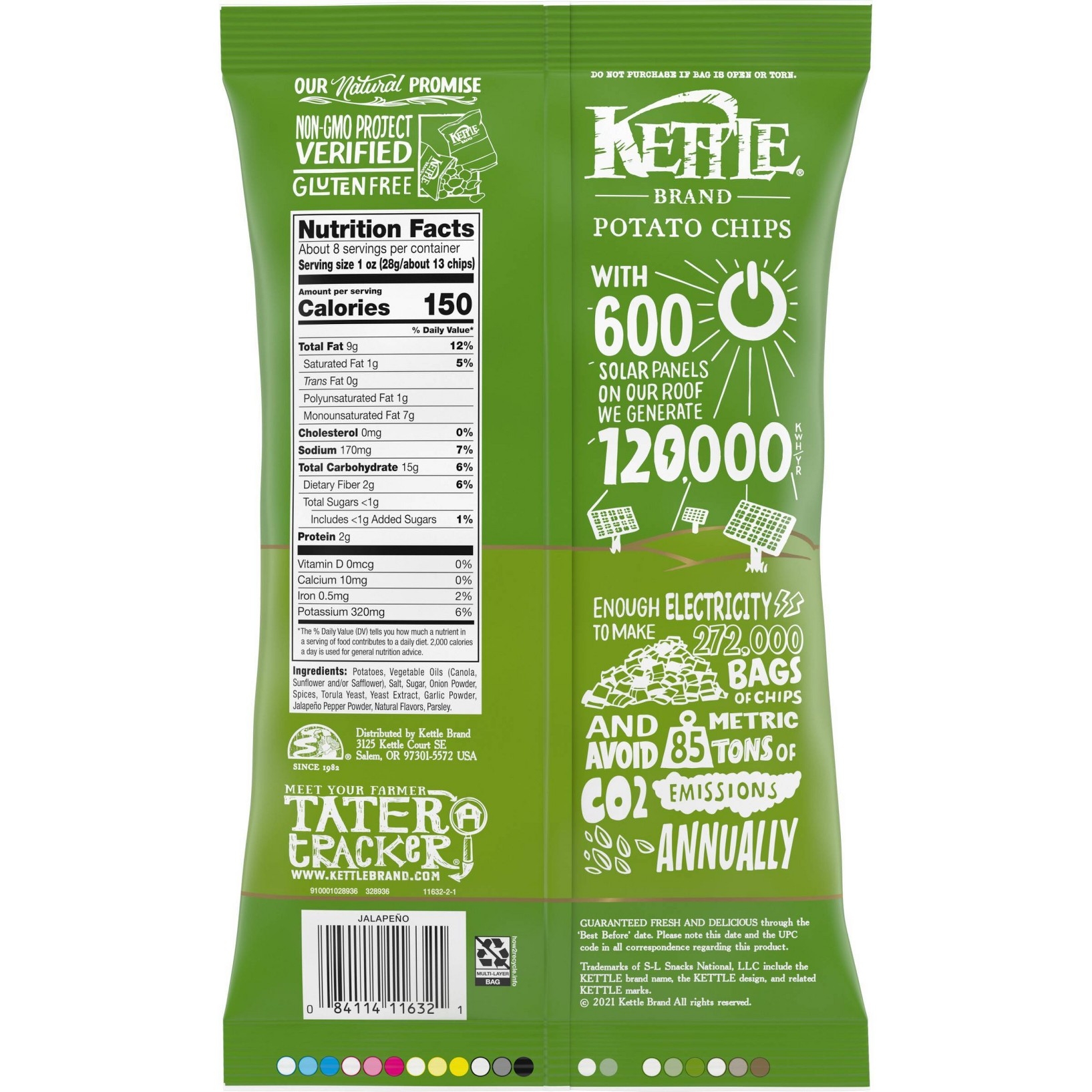 u0026bull;SPICY CHIPS: Balanced, fresh and spicy jalapeno pepper flavoru003cbru003eu0026bull;KETTLE POTATO CHIPS: Crunchy kettle cooked potato chips with a spicy hot twistu003cbru003eu0026bull;OUR NATURAL PROMISE: Non-GMO Project Verified, Certified Gluten Freeu003cbru003eu0026bull;AUTHENTIC RECIPE: Made with an authentic recipe for zesty, south of the border flavor with no artificial flavors or preservativesu003cbru003eu0026bull;LARGE BAG: 8.5 ounce bag of chips is perfect for sharing at parties, tailgates, or just snacking on the couch
