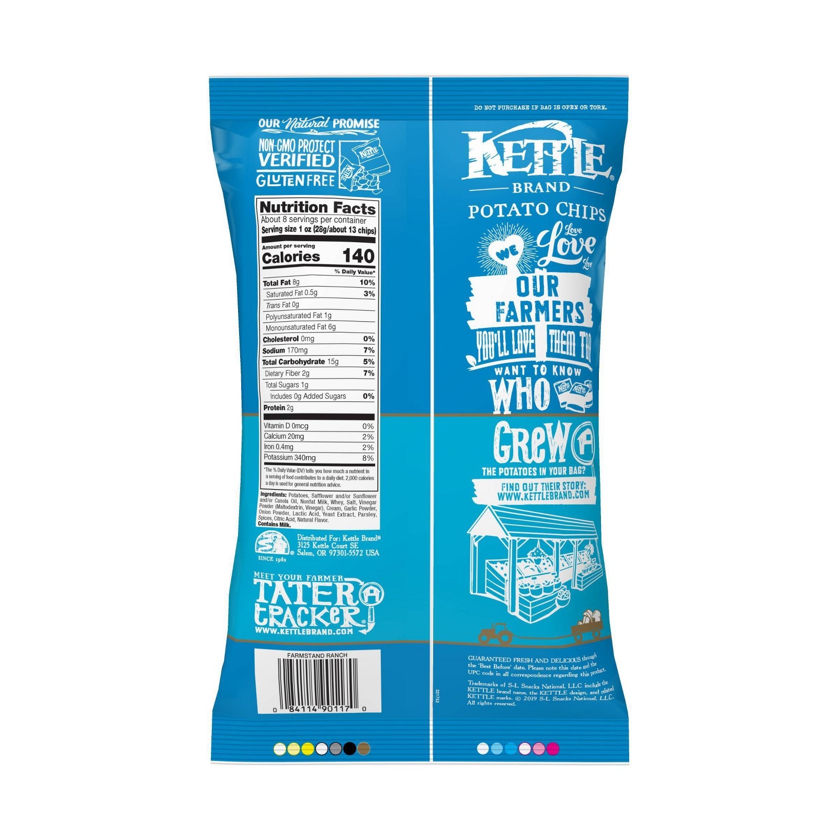 u0026bull;RANCH FLAVOR CHIPS: The perfect combination of zesty and creamy makes for ultimate flavoru003cbru003eu0026bull;KETTLE-COOKED: Incredible tasting potato chips with a hearty crunchu003cbru003eu0026bull;OUR NATURAL PROMISE: Gluten Free, Non-GMO Project Verifiedu003cbru003eu0026bull;AUTHENTIC RECIPE: Made with an authentic, tangy ranch recipeu003cbru003eu0026bull;LARGE BAG: 8.5-ounce bag of chips is perfect for sharing at parties, picnics, or just snacking on the couch