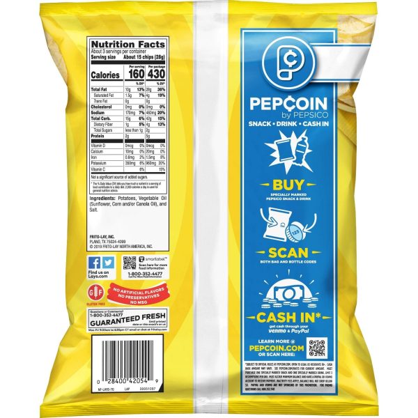 u0026bull;Includes 1 (2.88oz) bag of Lay’s Potato Chips, Classic Flavoru003cbru003eu0026bull;Farm-grown potatoes seasoned with just the right amount of saltu003cbru003eu0026bull;Only 3 Ingredients: Potatoes, Vegetable Oil, and Saltu003cbru003eu0026bull;Lay’s Classic Potato chips are made with no artificial flavors, no preservatives, and are Gluten Freeu003cbru003eu0026bull;Delicious alone or when with your favorite onion dip