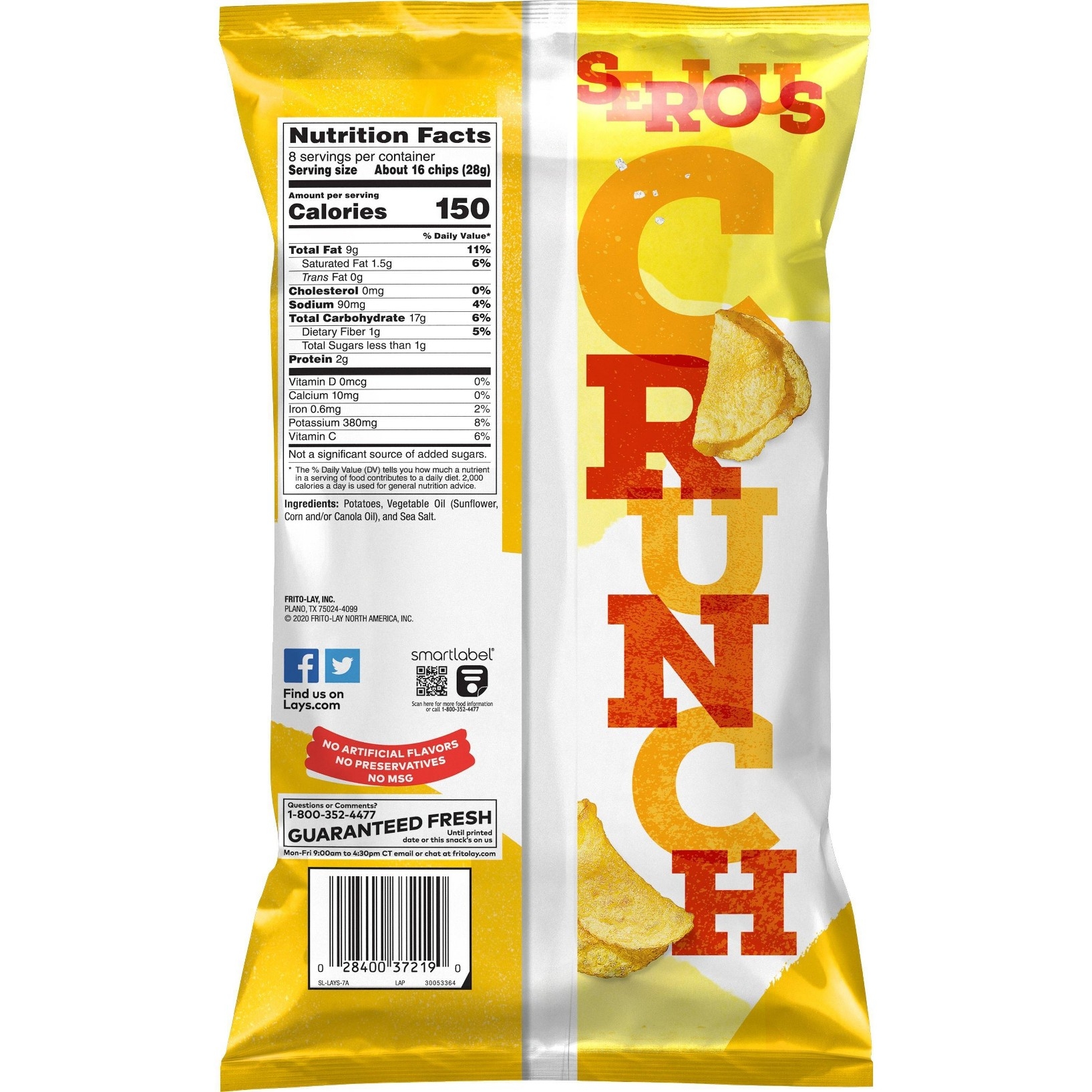 u0026bull;Includes 1 (7.75oz) bag of Lay’s Lightly Salted Potato Chips, Classic flavoru003cbru003eu0026bull;Made with real potatoes, cooked to crispy perfection and seasoned with half the amount of sodium than our original Classic Potato Chipsu003cbru003eu0026bull;160 Calories per serving, Gluten Free, and made with no artificial flavors or preservativesu003cbru003eu0026bull;Made with just 3 ingredients: Potatoes, Vegetable Oil, and Saltu003cbru003eu0026bull;Try pairing with your favorite onion dip and a glass of sweet white wine or sparkling water for a simple, delicious snack