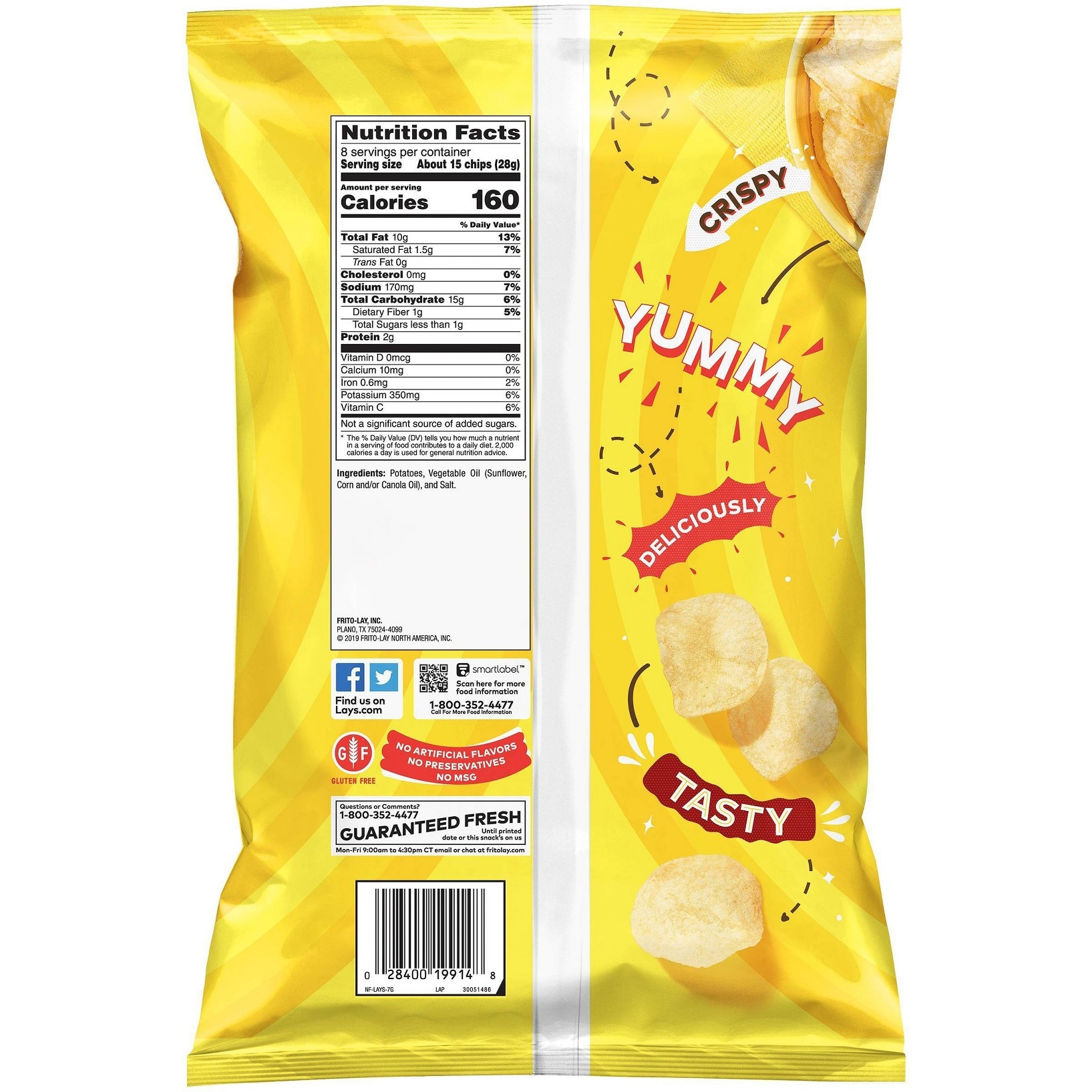 u0026bull;Includes 1 (8oz) bag of Lay’s Potato Chips, Classic Flavoru003cbru003eu0026bull;Farm-grown potatoes seasoned with just the right amount of saltu003cbru003eu0026bull;Only 3 Ingredients: Potatoes, Vegetable Oil, and Saltu003cbru003eu0026bull;Lay’s Classic Potato chips are made with no artificial flavors, no preservatives, and are Gluten Freeu003cbru003eu0026bull;Delicious alone or when with your favorite onion dip
