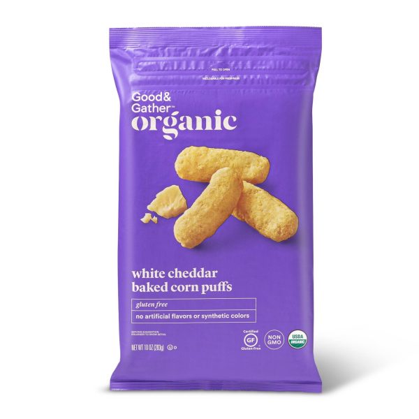 u0026bull;Good u0026 Gather organic white cheddar baked corn puffsu003cbru003eu0026bull;Gluten Free Certified, non-GMO and USDA Organicu003cbru003eu0026bull;No artificial flavors or synthetic colorsu003cbru003eu0026bull;1.5oz bag great for dipping, dunking, sharing and savoringu003cbru003eu0026bull;Kosher Dairy