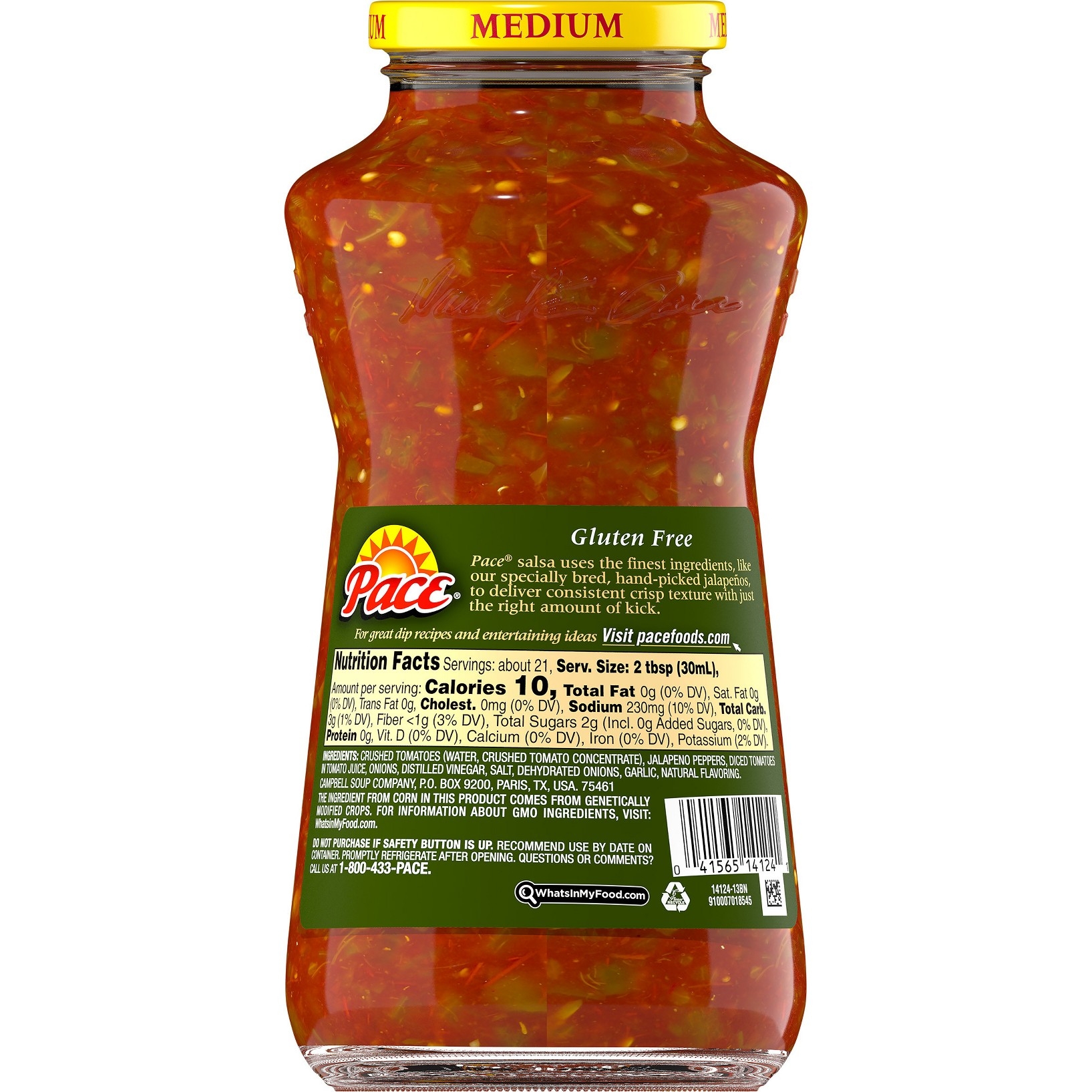 u0026bull;EDIUM SALSA WITH BOLD FLAVOR: Made with hand-picked jalapeñosu003cbru003eu0026bull;GLUTEN-FREE CHUNKY SALSA: Carefully crafted from the finest ingredientsu003cbru003eu0026bull;PAIR WITH TORTILLA CHIPS: Delicious to eat as a dipu003cbru003eu0026bull;KICK UP YOUR COOKING: Add Pace® to taco nightu003cbru003eu0026bull;EASY PANTRY STAPLE: Keep a jar of Pace® on hand