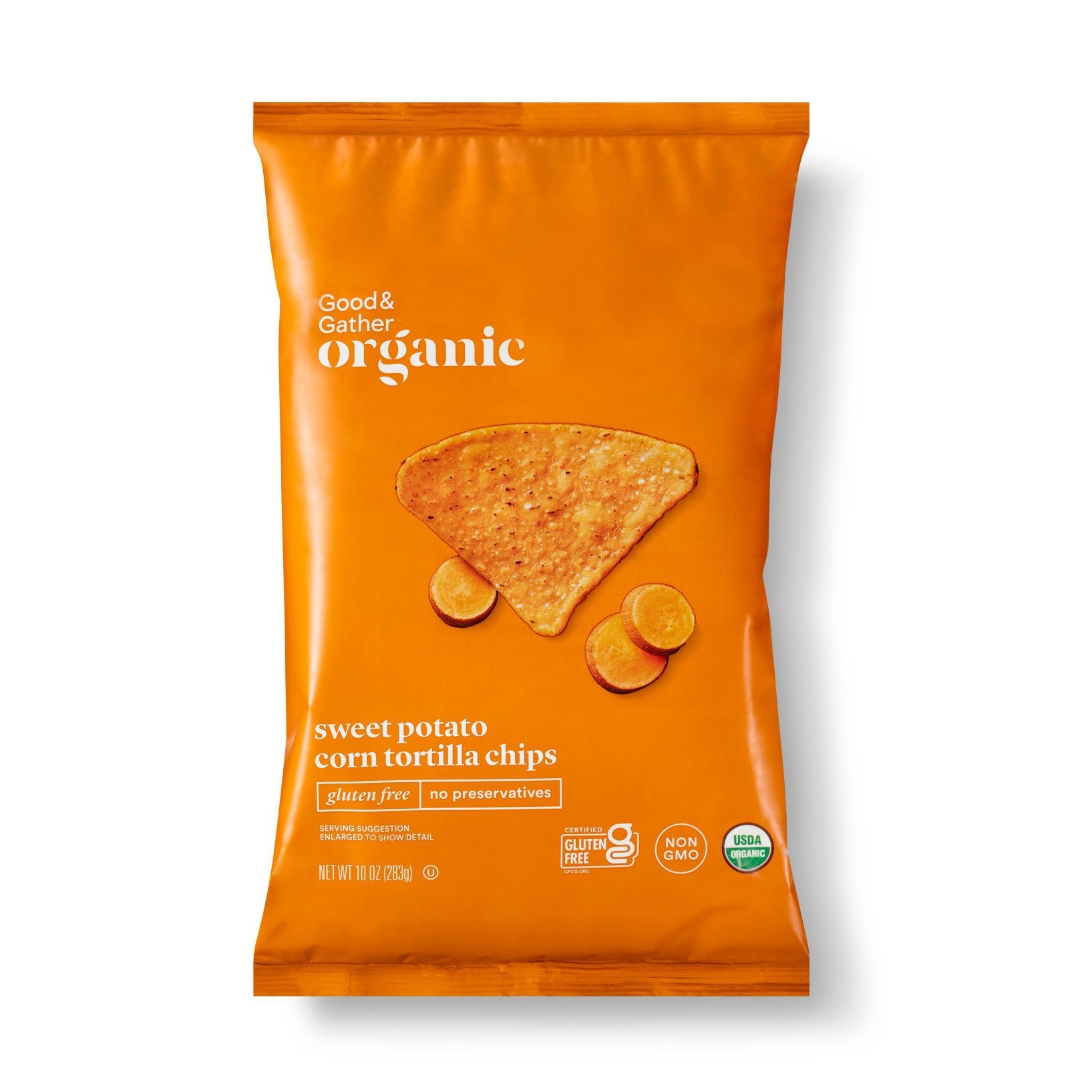 u0026bull;Good u0026 Gather organic sweet potato corn tortilla chipsu003cbru003eu0026bull;Gluten Free Certified, non-GMO and USDA Organicu003cbru003eu0026bull;Made with no preservativesu003cbru003eu0026bull;Great for enjoying with your favorite salsas and dipsu003cbru003eu0026bull;Kosher
