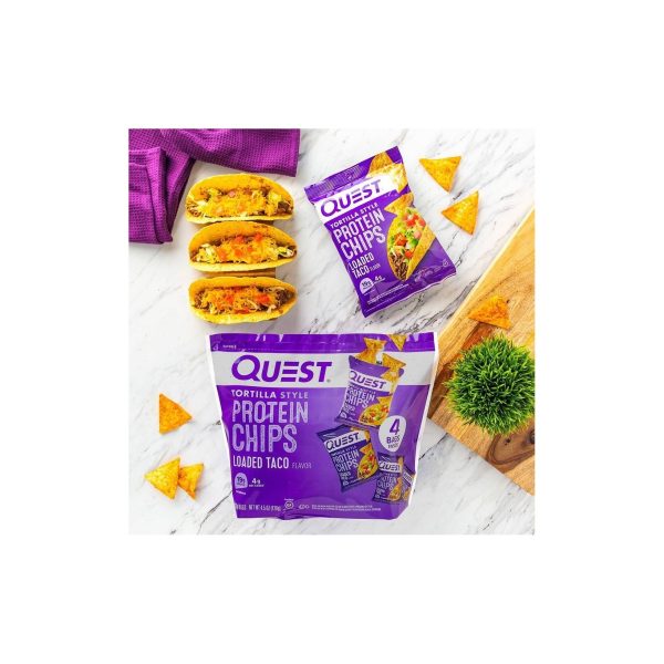 u0026bull;ENJOY MORE. CARB LESS: The Quest Loaded Taco Tortilla Style Protein Chips provide all the crunch and satisfying taste of a regular tortilla chip. Only ours have 19g of protein and 4g net carbs per bag. u003cbru003eu0026bull;CRUNCH INTO COMPLETE PROTEINS: The Quest Loaded Taco Tortilla Style Protein Chips are made with complete, dairy-based proteins to provide your body with 9 essential amino acids.u003cbru003eu0026bull;SALTY, SAVORY, CRUNCHY: Quest Loaded Taco Tortilla Style Protein Chips are seasoned to perfection and contain no added soy ingredients.u003cbru003eu0026bull;BAKED, NEVER FRIED: Quest Loaded Taco Tortilla Style Protein Chips are baked to provide you with the satisfying crunch you crave without adding oils to your chips.u003cbru003eu0026bull;COMFORT SNACKS FOR AT-HOME CRAVINGS: The Quest Loaded Taco Tortilla Style Protein Chips are crunchy, salty, savory snacks to enjoy at home whenever your salty cravings hit.