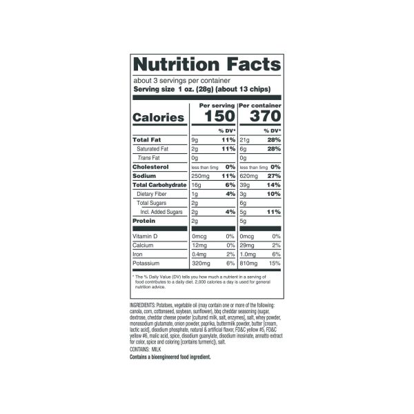 u0026bull;Kettle cooked for a crispy-crunchy textureu003cbru003eu0026bull;50% less fat than the leading brand’s potato chips*u003cbru003eu0026bull;Perfect for lunches, parties, barbecues and afternoon snacksu003cbru003eu0026bull;Kosher and gluten-freeu003cbru003eu0026bull;Resealable bag for freshness