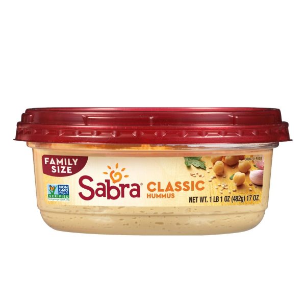 u0026bull;Includes 1 (25oz) container of Sabra Classic Hummusu003cbru003eu0026bull;Simple ingredients, amazing flavorsu003cbru003eu0026bull;Flavorful blend of chickpeas, garlic, and tahiniu003cbru003eu0026bull;Pair with pretzels, pita chips, or your favorite fruitu003cbru003eu0026bull;Vegetarian, Non-GMO Project Certified, Gluten Free, and Kosher certified