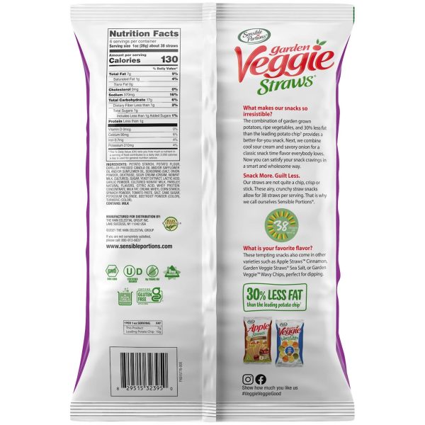 u0026bull; Six individual 1 oz. bags of Sea Salt Garden Veggie Straws u003cbru003eu0026bull;Made with garden-grown potatoes and vegetables u003cbru003eu0026bull;30% less fat than the leading brand of potato chips* u003cbru003eu0026bull;0mg cholesterol and 0g trans fat per serving u003cbru003eu0026bull;Certified Kosher and gluten-free