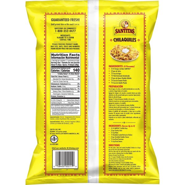 u0026bull;The authentic flavor of Santitas tortilla chips starts with high-quality, stone-ground cornu003cbru003eu0026bull;Just like the crunchy perfection of tortilla chips in your favorite Mexican restaurantu003cbru003eu0026bull;Just add salsa or guacamole on the side for a party snack that can’t be beatu003cbru003eu0026bull;The perfect base for nachos, chilaquiles, and more