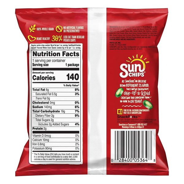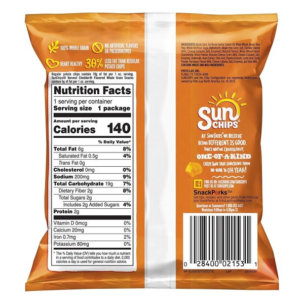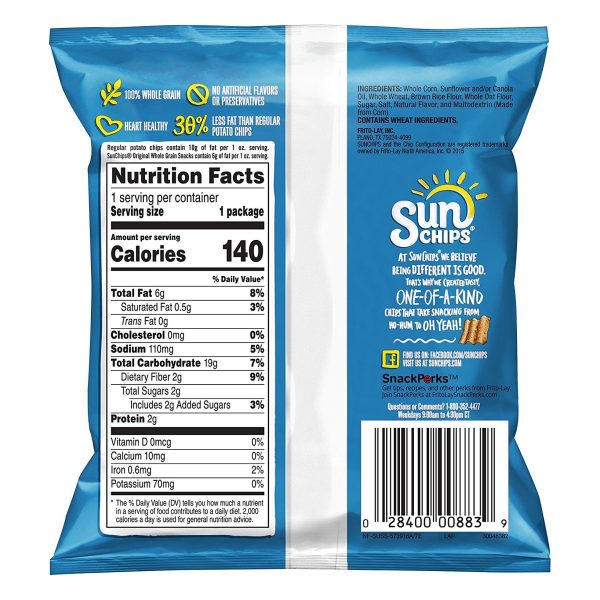 SUNCHIPS snacks are wavy, ripple-y squares full of whole-grain goodness (14-19g of whole grains per serving). Grab a bag of SUNCHIPS whole grain snacks in your favorite flavor, and tell your taste buds to meet you at the corner of delicious and wholesome.
