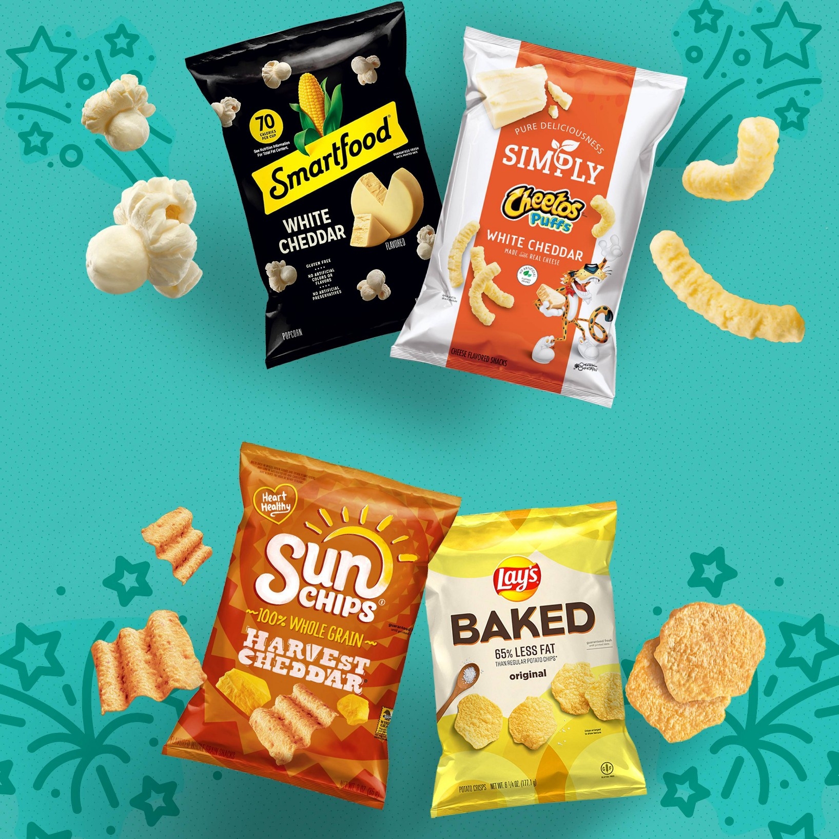 SUNCHIPS snacks are wavy, ripple-y squares full of whole-grain goodness (14-19g of whole grains per serving). Grab a bag of SUNCHIPS whole grain snacks in your favorite flavor, and tell your taste buds to meet you at the corner of delicious and wholesome.