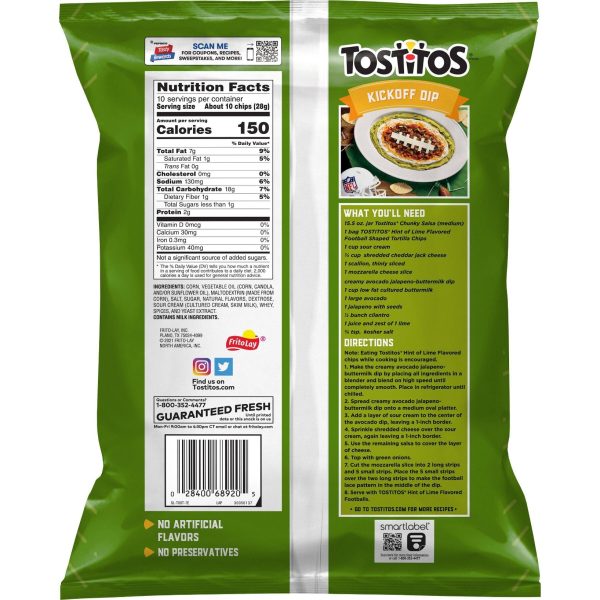 u0026bull;Includes 1 (10oz) bag Tostitos Football Shaped Tortilla Chipsu003cbru003eu0026bull;Hint of Lime flavoredu003cbru003eu0026bull;Limited Time Onlyu003cbru003eu0026bull;Official Chip and Dip of the NFL