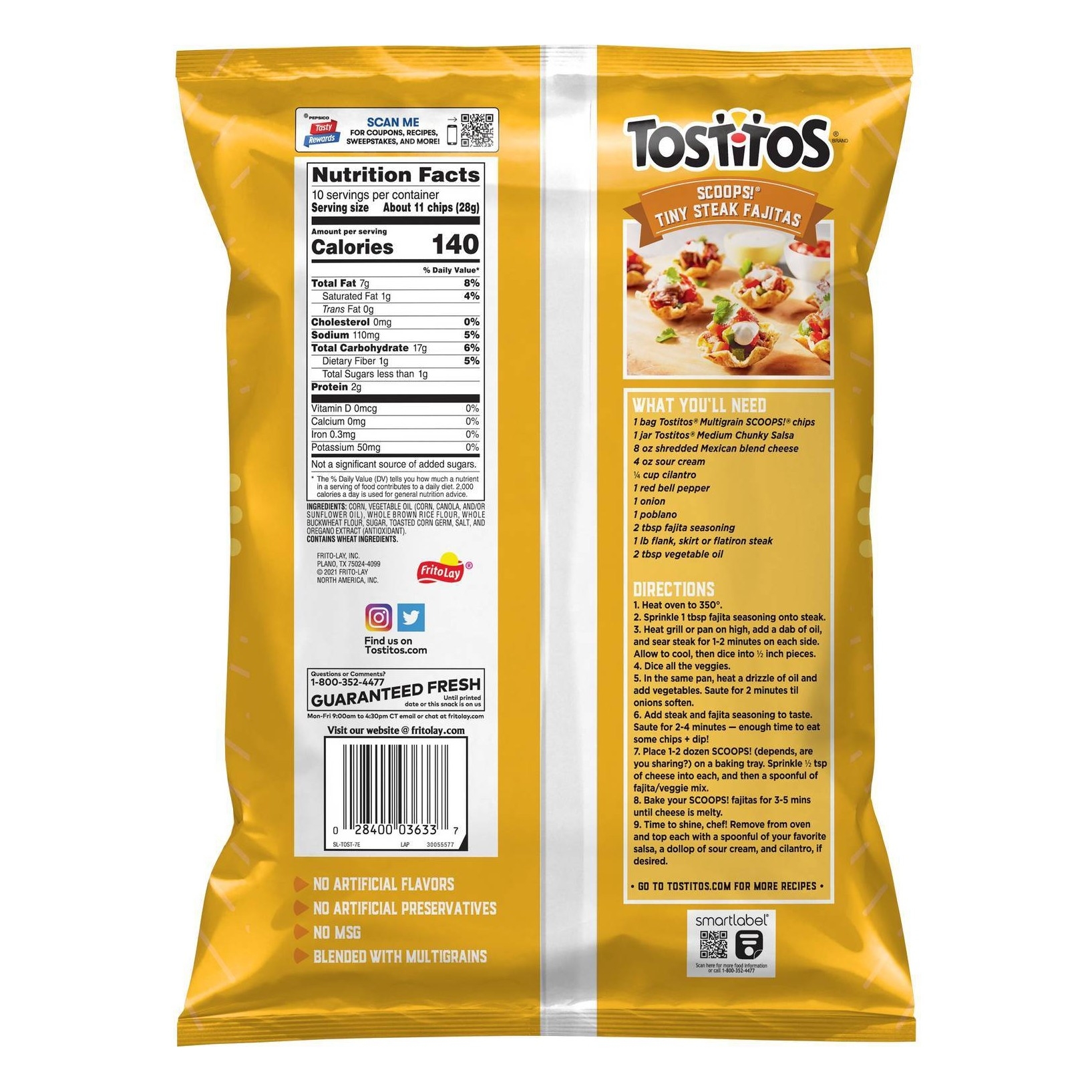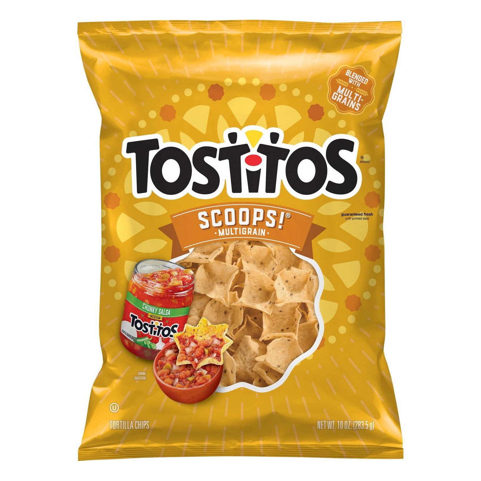 u0026bull; 10.0oz. bag of TOSTITOS Multigrain SCOOPS! Tortilla Chipsu003cbru003eu0026bull; Multigrain tortilla chip snack the whole family will loveu003cbru003eu0026bull; Perfect for dipping in your favorite FRITO LAY dipu003cbru003eu0026bull; Multigrain deliciousness from the TOSTITOS brand you loveu003cbru003eu0026bull;Packaging may vary