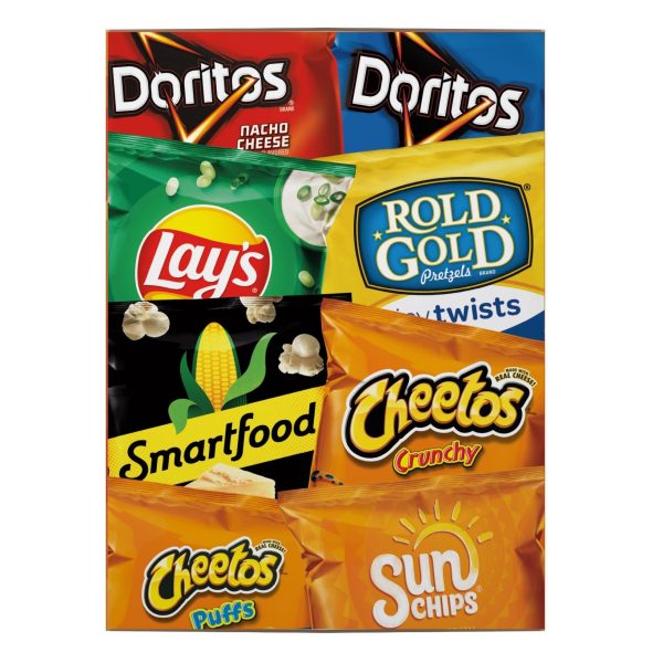 u0026bull;28 count mix includes Doritos Tortilla Chips, Nacho Cheese u0026 3 Cool Ranch, Cheetos Cheese Crunchy Snacks, Cheetos Cheese Puffs, Lay’s Sour Cream and Onion Flavored Tortilla Chips, Rold Gold Tiny Twists Original Pretzels, 3 Smartfood White Cheddar Cheese Flavored Popcorn, SunChips Harvest Cheddar Flavored Whole Grain Snacksu003cbru003eu0026bull;You’ll have at least one of each item featured on the packaging, but due to unprecedented supply chain challenges the exact mix will vary.u003cbru003eu0026bull;All your faves are here! But some item counts will varyu003cbru003eu0026bull;Great snacks your whole family will enjoyu003cbru003eu0026bull;Individually packaged for easy on-the-go and flavor-filled snackingu003cbru003eu0026bull;Perfect for packing lunchesu003cbru003eu0026bull;Packaging may vary