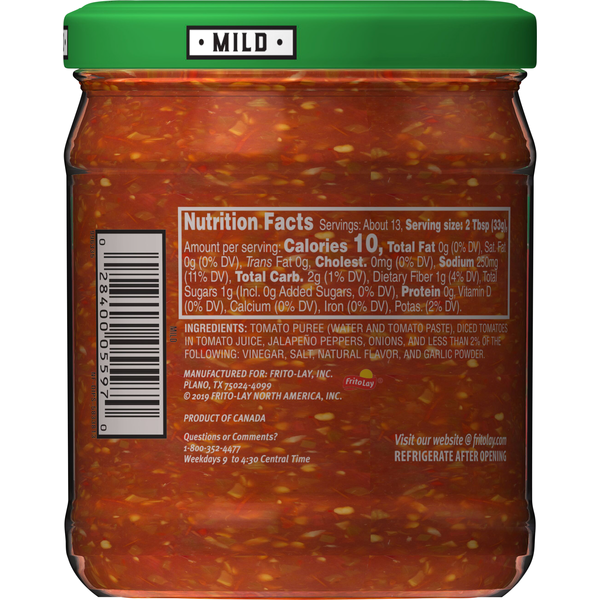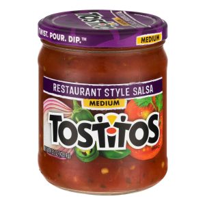 Get ready for game time, entertaining guests or a tasty snack with this Tostitos Mild Chunky Salsa. It’s less spicy, but still packs some punch, making it ideal for just about everyone. Pair this tortilla chips salsa with chips, nachos or tacos for a snack or meal that’s sure to please. It’s free of trans fat, saturated fat and cholesterol and is low in sugars. Make your next snack more special with Tostitos salsa. It’s available in a 15.5 oz container.