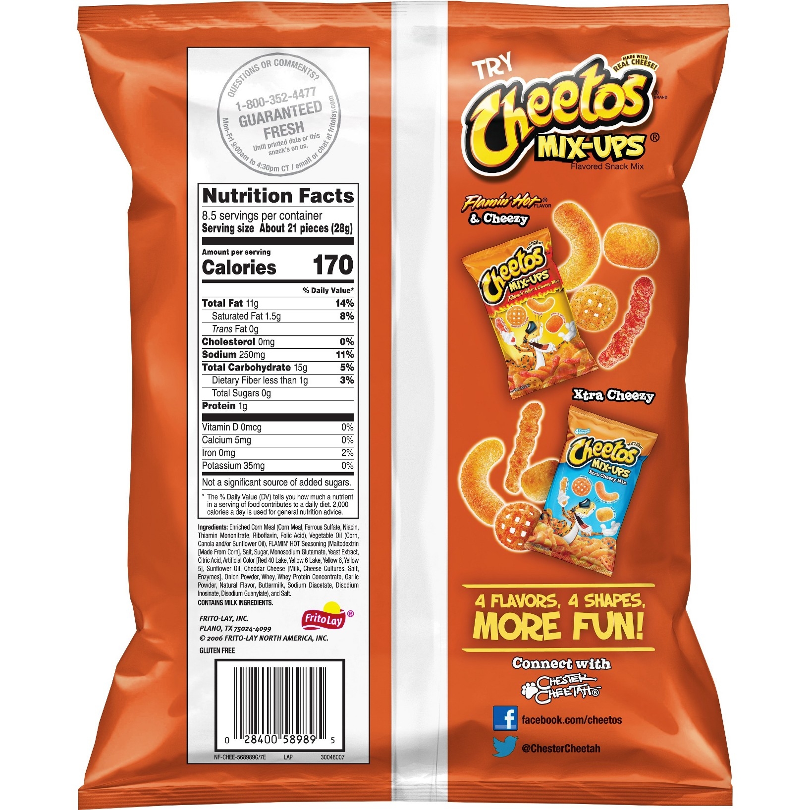 u0026bull;Bring a cheesy, delicious crunch to snack time with a bag of CHEETOS Cheese-Flavored Snacksu003cbru003eu0026bull;Made with real cheese for maximum flavoru003cbru003eu0026bull;CHEETOS snacks are the much-loved cheesy treats that are fun for everyoneu003cbru003eu0026bull;Wherever the CHEETOS brand and CHESTER CHEETAH go, cheesy smiles are sure to follow