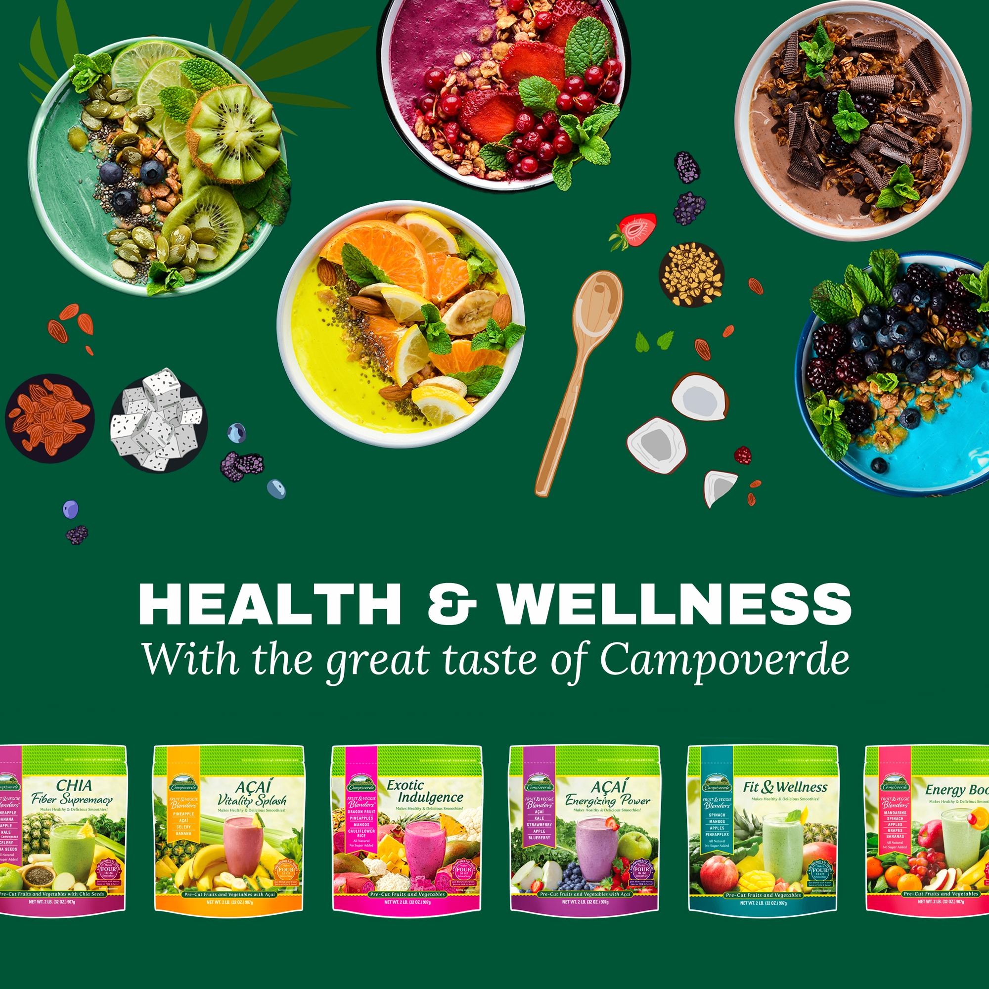 Campoverde Frozen Fruit & Veggie Smoothie 4 Pack, Energy Boost, 32 oz Bag
