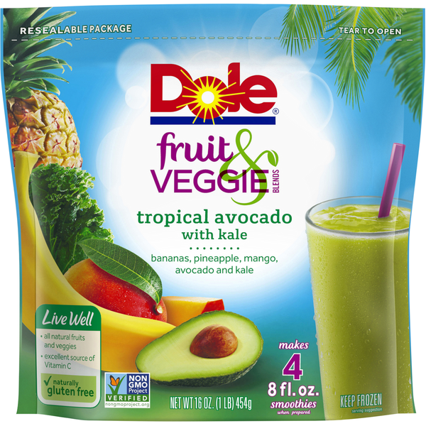 Dole Fruit & Veggie Blends Tropical Avocado with Kale Smoothie Mix