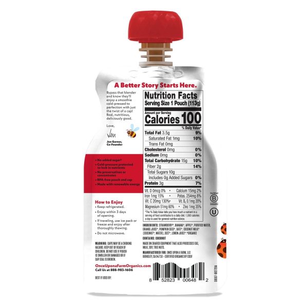 Once Upon a Farm Organic Dairy-Free Strawberry Banana Swirl Kidsu002639 Smoothie – 4oz Pouch
