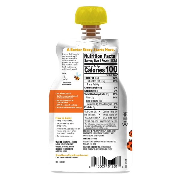u0026bull;A refrigerated nutrition-packed and convenient kids smoothie for busy on-the-go parents and kids!u003cbru003eu0026bull;3 grams of protein from pint-sized pumpkin seeds plus 2 grams of fiber to satisfy any adventure.u003cbru003eu0026bull;Coco for Mangoes Dairy-Free Smoothie is a subtly sweet and satisfying snack with no added sugar?, no preservatives or artificial ingredients.u003cbru003eu0026bull;Proud recipient of The Clean Label Project verification and Purity Award Certification, parents can feel confident giving their little ones this delicious smoothie!u003cbru003eu0026bull;Cold-pressed to lock in nutrients and flavors that toddler and kids will love. A great way to incorporate fruit into their diet.u003cbru003eu0026bull;Delicious, homemade taste without the prep and clean-up.u003cbru003eu0026bull;Always organic and Non-GMO Project Verified.u003cbru003eu0026bull;Refrigerated and ready to enjoy.u003cbru003eu0026bull;?Not a low calorie food.