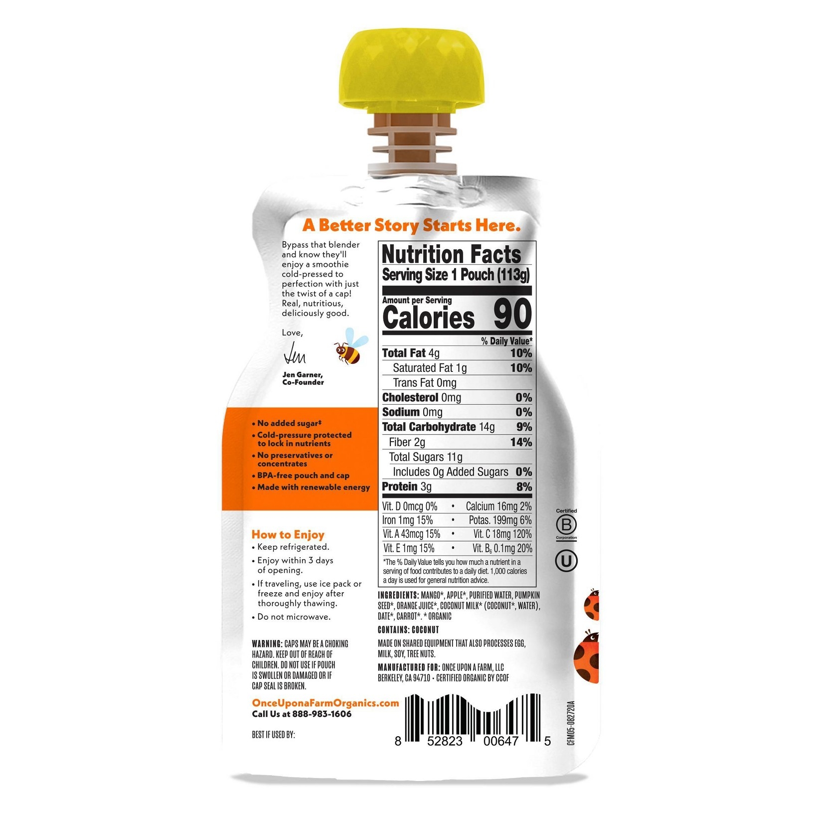 Once Upon a Farm Organic Coco for Mangoes Kidsu002639 Dairy-Free Smoothie – 4oz Pouch