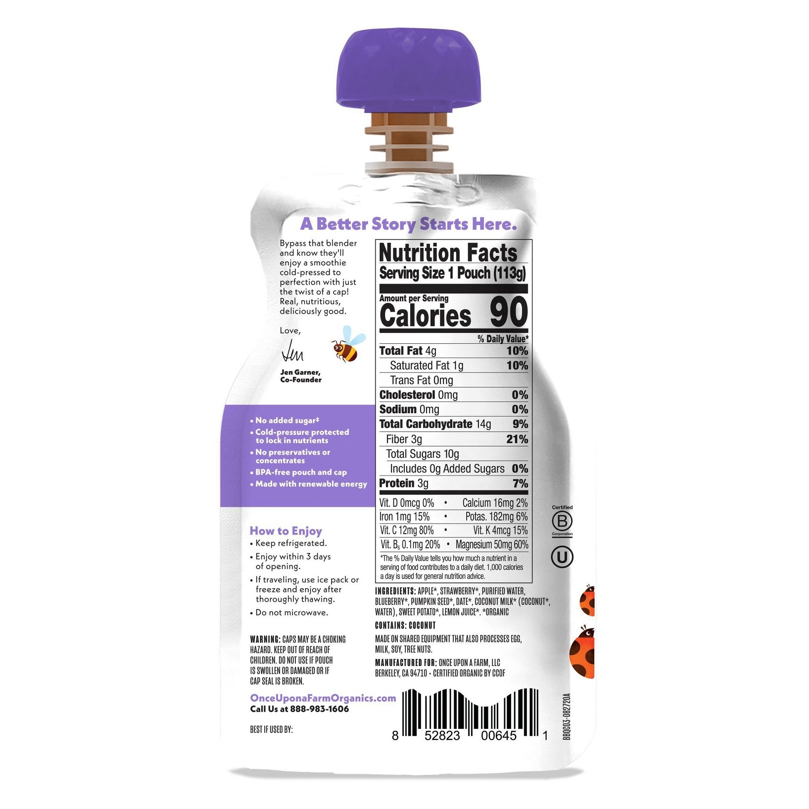 Once Upon a Farm Organic Berry Berry Kidsu002639 Dairy-Free Smoothie – 4oz Pouch