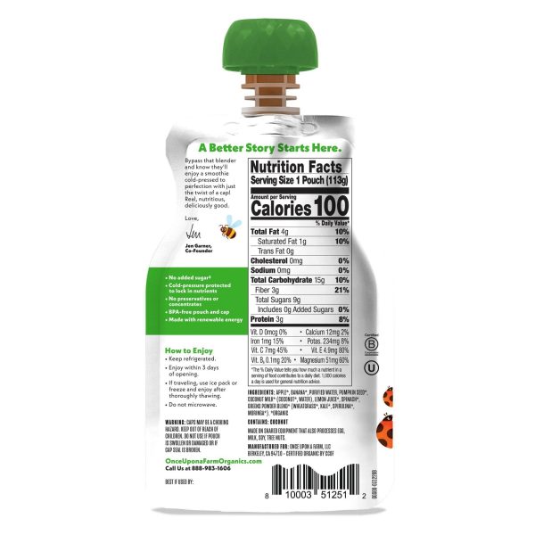 Once Upon A Farm Organic Dairy-Free Go-Go Greens Kidsu002639 Smoothie – 4oz Pouch