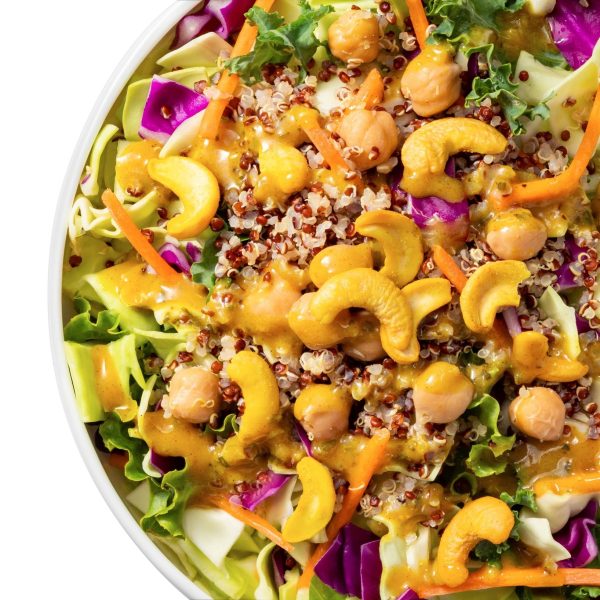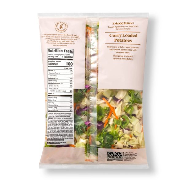 u0026bull;Good u0026 Gather vegan chopped salad kit inspired by Thai flavorsu003cbru003eu0026bull;Green and red cabbage, red and white quinoa with chickpeas, green leaf lettuce, carrot, kale, coconut flavored curry seasoned cashews and green onion.u003cbru003eu0026bull;Ready-to-eat quinoa and chickpeas and coconut curry seasoned cashews add texture, flavor and crunch for flavorful crunchy finishu003cbru003eu0026bull;Includes zesty plant-based yellow Thai-style curry vinaigrette dressing
