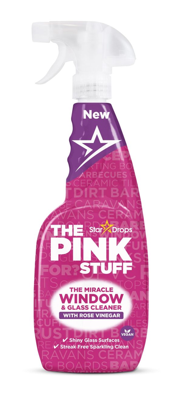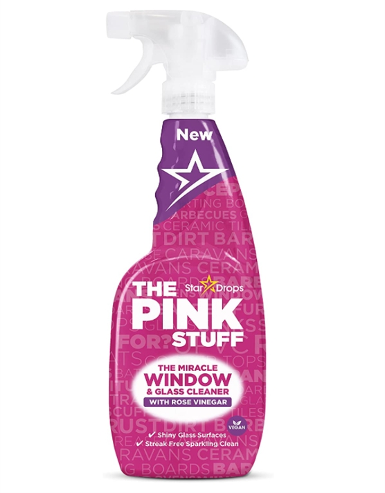 The Pink Stuff, Miracle Window and Glass Cleaner Spray, Rose Vinegar, Vegan, 750 ml