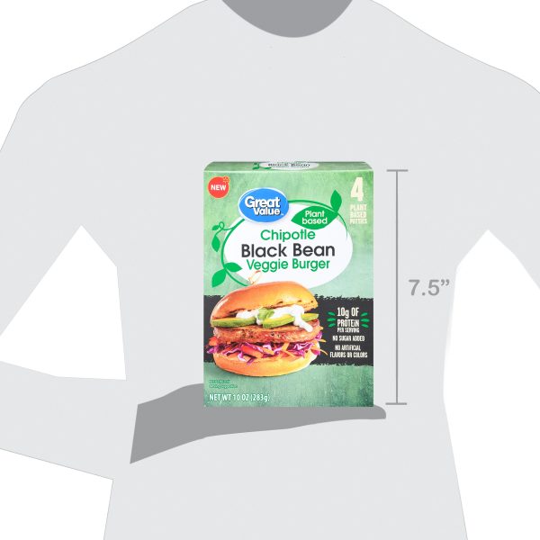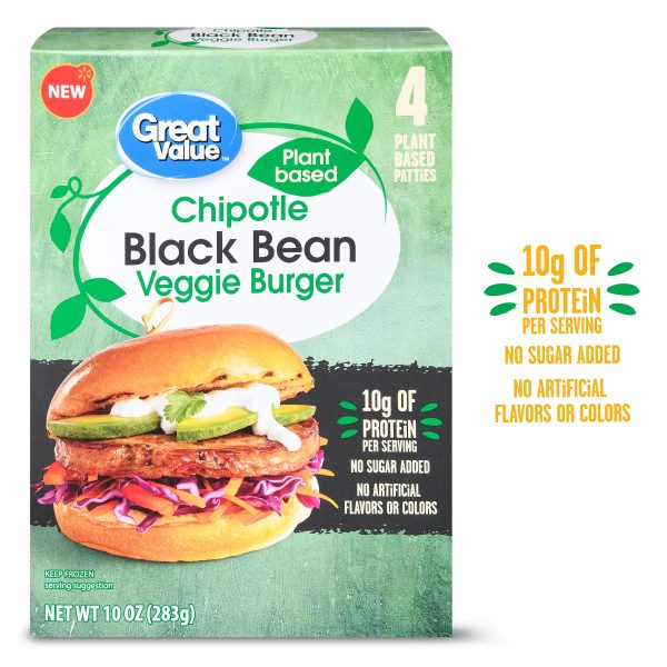 Great Value Chipotle Black Bean Veggie Burger, 10 oz, 4 Ct