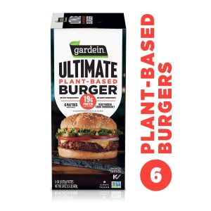 Finally, a plant-based burger you can really sink your teeth into. The Gardein Ultimate plant-based burger gives you the full burger experience without beef. These delicious, juicy, 1/4-pound, plant-based frozen patties look, cook, smell and satisfy like real meat. Each meatless burger is non-GMO Project Verified, Vegan, contains no sory or dairy ingredients, and provides 20 grams of protein per serving. Whether you prefer cooking them on the grill or frying them in a skillet, the mouthwatering goodness of this Gardein Burger is sure to satisfy your hamburger cravings with a vegetarian patty. When your Veggie burger has it all, It must be a Gardein Ultimate plant-based burger.
