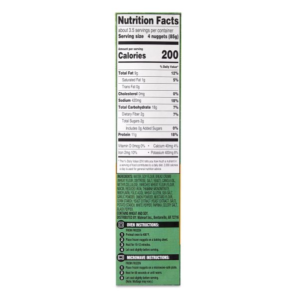 Great Value Plant Based Chick’n Patties are a delicious meatless alternative that the entire family will enjoy. With 12 grams of protein per serving, these chick’n patties are made with wheat protein, faba bean protein, pea fiber, chickpeas, and other high-quality ingredients. A good source of iron, these patties have no artificial flavors or colors. Treat the family to the wonderful taste of Great Value Plant Based Chick’n Patties.