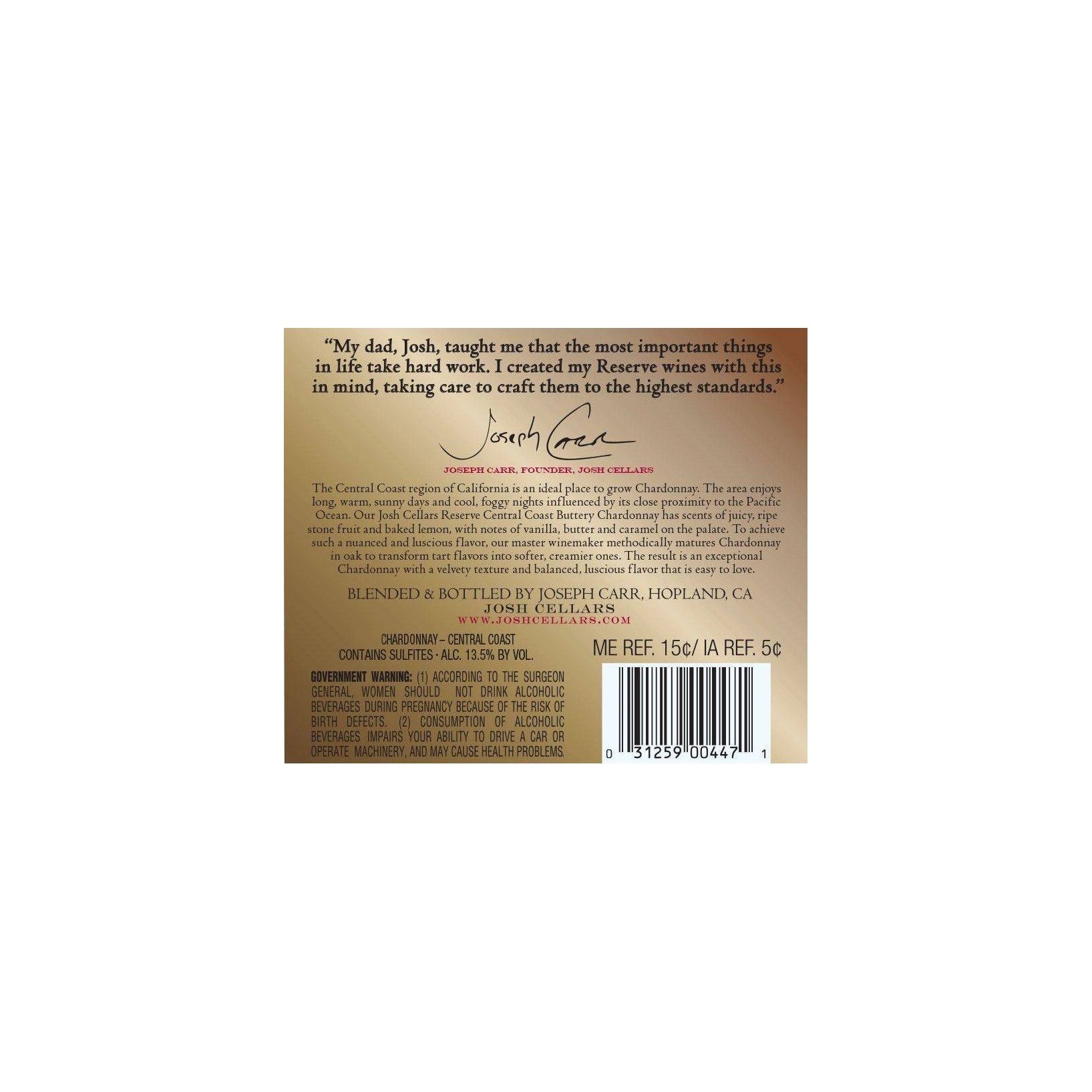 u0026bull;Vivino rated the 2015 vintage of Josh Cellars Chardonnay as one of the top 10% of wines in the worldu003cbru003eu0026bull;One 750 ml wine bottle of Josh Cellars Chardonnayu003cbru003eu0026bull;White wine with flavors of bright citrus and honeyu003cbru003eu0026bull;Full bodied, white wine with a bright, fresh palateu003cbru003eu0026bull;Serve this California wine chilled to experience its full flavor profileu003cbru003eu0026bull;Chardonnay wine pairs perfectly with shrimp, steamed mussels, creamy pastas, roasted chicken and grilled vegetablesu003cbru003eu0026bull;This bottle of wine reflects the high-quality standards for which Josh Cellars is known