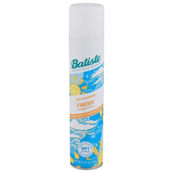 Batiste – Instant hair refresh. Refreshes hair without drying out. Light and breezy fragrance. A burst from this can of magic removes oil effectively, leaving hair looking clean and feeling all kinds of fabulous without drying it out. With a breeze of citrus essence, seize the day and sparkle by night. Give your hair a new lease on life with added body and texture between washes, whenever you need it. All hair types welcome! Pssst – Did you know? 86% of consumers agree Batiste dry shampoo effectively removes grease and oil from hair (Consumer study, 150 subjects, % agreement satisfaction after 1 week with 1 or more uses). Our Promise: Won’t dry hair out; Gently removes oil; Long lasting freshness. how2recycle.info. Instagram: (at)batiste_us. Facebook: (at)batisteus. TikTok: (at)batiste. US & Canada: 800-952-5080 M-F 9am to 5pm ET. Proud supporter of Arbor Day Foundation. Award Winning No.1 brand (Based on 52 week unit sales of dry shampoo, Nielsen All Outlet through 10/24/20) with Keratin. Recyclable. Made in USA with US and imported materials.