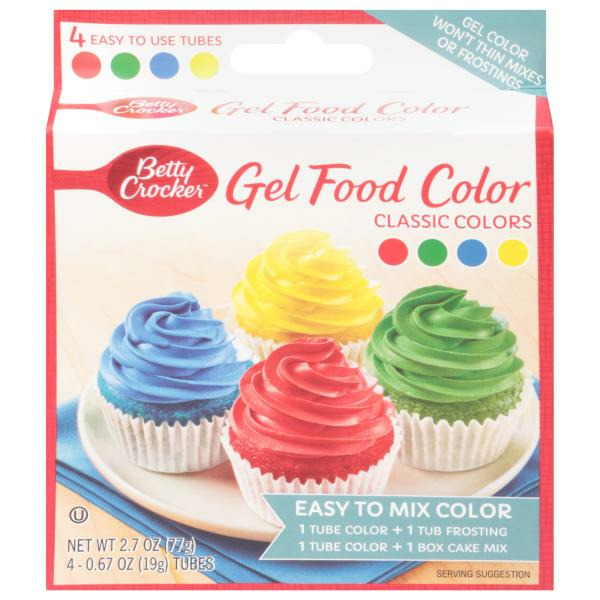 4 easy to use tubes. Gel color won’t thin mixes or frostings. Easy to Mix Color: 1 tube color + 1 tub frosting. 1 tube color + 1 box cake mix. Easy Color Blending & Mixing: Gel base won’t dilute even the most delicate recipes. Squeeze tubes make dispensing and color mixing simple.