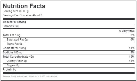 Thoughtful portion: 1 Portion = 1-1/4 cups (83g). Balance your plate with a salad & great company!
