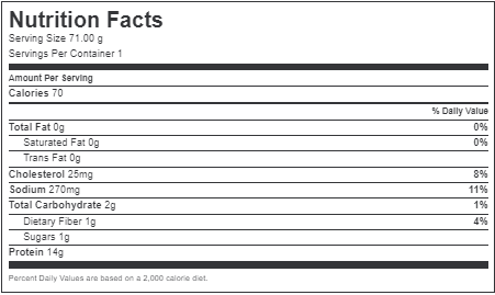 Light Tuna, Water, Salt, Sugar, Black Pepper, Citric Acid, Lemon Juice, Modified Food Starch, Vegetable Broth (pea, Carrot), Lemon Flavor, Guar Gum.