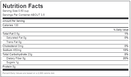 Prepared Kidney Beans, Water. Contains 2% Or Less Of: Tomato Puree (tomato Paste, Water), Modified Corn Starch, Salt, Spice, Corn Oil, Calcium Chloride (firming Agent), Garlic Powder, Onion Powder.