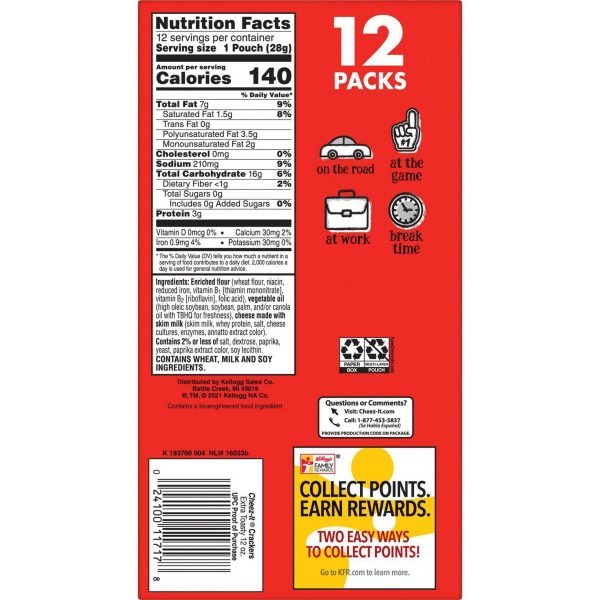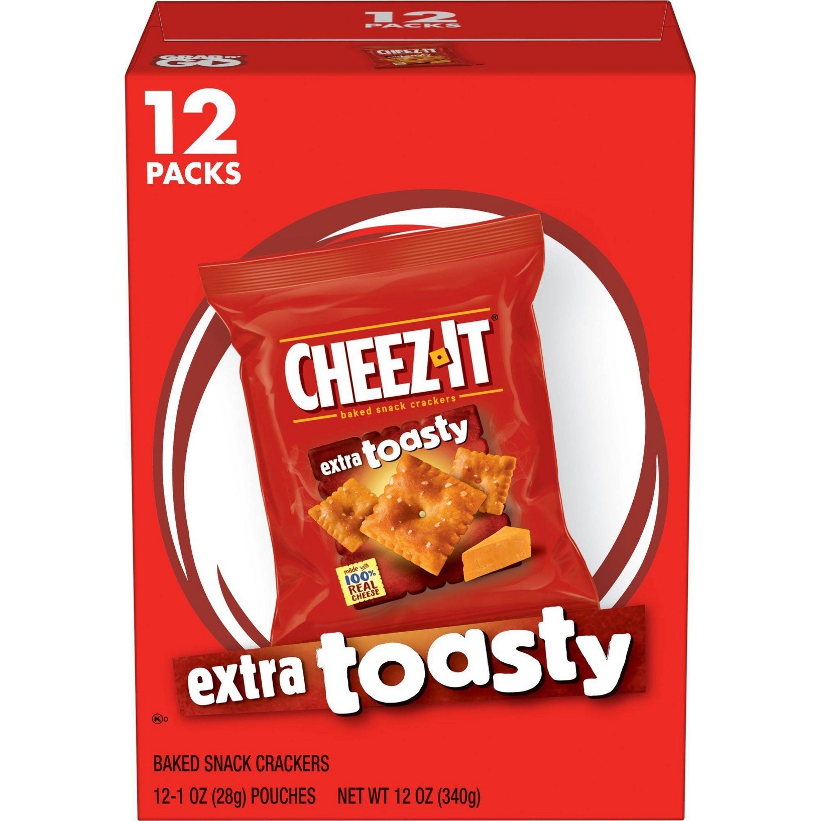 Turn snack time into an event with Cheez-It Extra Toasty baked snack crackers – the number one requested Cheez-It flavor. Every single cracker has been baked to crisp, toasty perfection for an added snap with each bite. Cheez-It Extra Toasty baked snack crackers are made with 100% real cheese that’s been perfectly aged for a bold, delicious flavor. Cheez-It crackers are perfect for game time, party spreads, school lunches, BBQs, after-school snacks, snacks at the office, late-night snacking and more – the cheesy options are endless. Ideal for on the go too, Cheez-It crackers are great to bring along on field trips, camping, hiking, trips to the park, picnics, outdoor concerts, everyday errands, and more. The antidote to flavorless crackers, Cheez-It Extra Toasty baked snack crackers are packed with irresistible cheesy flavor and are a great addition to homemade snack mixes and party mixes. You’ll love the one-of-a-kind flavor of real cheese in every tasty handful.