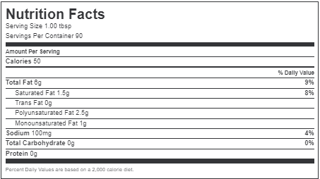 ? LESS FAT THAN DAIRY BUTTER: Each 1 tbsp serving contains 45% less fat and 75% less saturated fat than a 1 tbsp serving of dairy butter