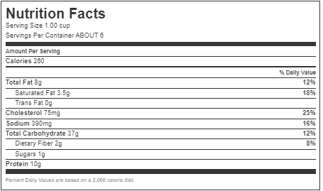 Pasta (durum Wheat Flour, Eggs, Water), Filling (ricotta (whey, Milk, Cream, Vinegar), Seasoning (water, Sunflower Oil, Potato Starch, Casein, Salt), Bread Crumbs (wheat Flour, Yeast, Salt), Mozzarella Cheese (pasteurized Cultured Milk, Salt, Enzymes), Romano Cheese Made From Cow’s Milk (pasteurized Cultured Milk, Salt, Enzymes), Mascarpone Cheese (pasteurized Milk, Cream, Citric Acid), Dehydrated Potatoes, Vegetable Fiber, Natural Flavors, Chicory Root Fiber, Fontina Cheese (pasteurized Cultured Part-skimmed Milk, Sea Salt, Enzymes), Cornstarch, 2% Or Less Of Salt, Autolyzed Yeast Extract).