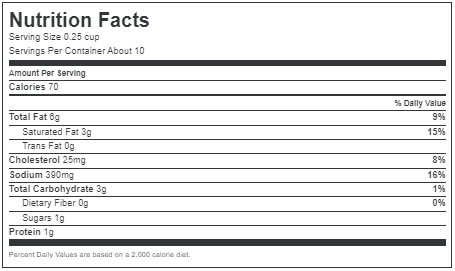 Water, Cream, Butter (cream, Salt), Parmesan Cheese (part-skim Milk, Cultures, Salt, Enzymes), Enzyme Modified Egg Yolks, Modified Food Starch, Soybean Oil, Contains Less Than 2% Of: Salt, Romano Cheese (part-skim Cow’s Milk, Cultures, Salt, Enzymes), Sugar, Whey, Enzyme Modified Cheese Paste (granular And Parmesan Cheese [milk, Cultures, Salt, Enzymes], Water, Sodium Phosphate, Enzymes), Sodium Phosphate, Xanthan Gum, Garlic, Black Pepper, Yeast Extract, Cheddar Cheese (milk, Cultures, Salt, Enzymes), Bay Leaves, Natural Flavoring, Anhydrous Milkfat.