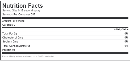 Extra Virgin Olive Oil (Adds a Trivial Amount of Fat), Soy Lecithin, Dimethyl Silicone (for Anti-Foaming), Propellant (Non-Chlorofluorocarbons).