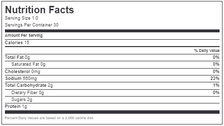 Soy Sauce (Water, Soybeans, Wheat, Salt), Vinegar, Sugar, Onion Powder, Garlic Powder, Spices, Sodium Benzoate (as a Preservative).