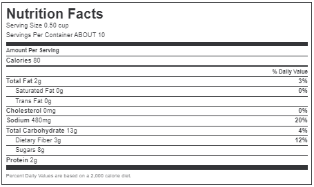 No artificial flavors. Per 1/2 Cup: 60 calories; 0 g sat fat (0% DV); 480 mg sodium (21% DV); 8 g sugars. 2 servings of veggies per 1/2 cup (Each 1/2 cup serving of sauce provides 1 cup of vegetable equivalent. The 2015-2020 Dietary Guidelines for Americans recommend 2-1/2 cup-equivalents of vegetables per day for a 2,000 calorie diet). Improved recipe! Rich & smooth! No artificial colors. No high fructose corn syrup. Now with olive oil. Crafted with passion since 1937. www.ragu.com. Questions & Comments: Please call us toll free: 1-800-Eat-Ragu (1-800-328-7248) or visit www.ragu.com.
